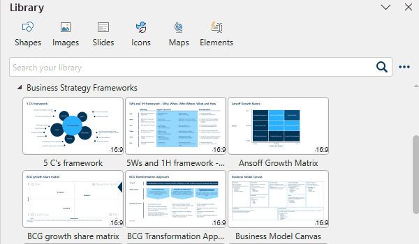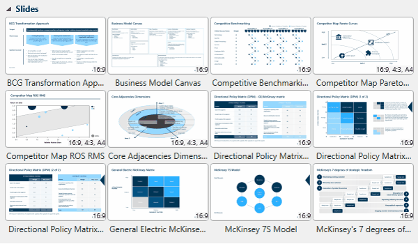 Whether communicating, analysing, or creating in Office, having access to all content types directly in the program benefits your work significantly. Enjoy direct access to templates, presentations, slides, workbooks, documents, maps, icons, and more. Save and access table and graph layouts, leverage dynamic slides for added ease and flexibility, and improve your communication with infographics.