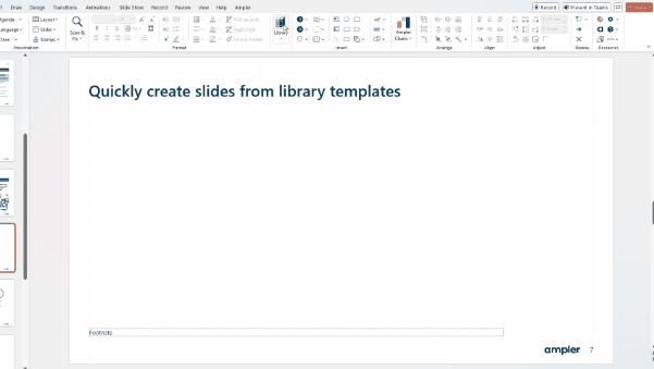 Digging through folders or old presentations to find that exact piece of content you need can be slow-going and exasperating. Ampler Library is embedded directly in Office, giving you direct access to all your personal, team, and company content. Set up buttons pointing directly at your most used content, use ‘Boards’ to filter your content and setup shortcuts, add metadata and leverage Ampler’s advanced and powerful search algorithm to rapidly retrieve the content you need.