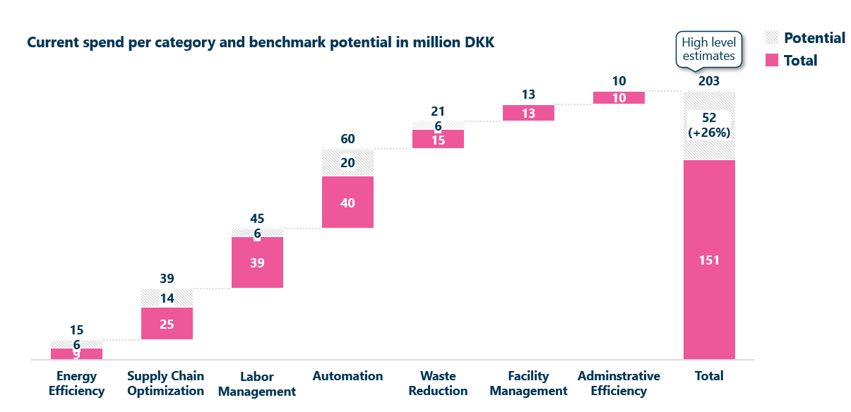 You can also use colors to indicate multiple insights, as shown down below it can be used to illustrate cost reduction potential, where the current costs are shown at the top of the column, the potential savings are shaded and changed cost are colored. This example goes to show how versatile this chart type is.